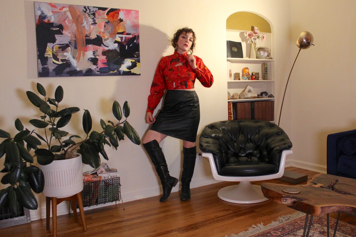 For some obscure reason this outfit makes me think of Major Kong riding the nuclear bomb like a bull in Dr. Strangelove. I always thought he said, “Yeeeeehawwwww!” But he actually yells, “Whaaaaahooooo!” So we all learned a bit of annihilation cowboy trivia. I wore this to a saloon-themed awards ceremony, The Rockies, for the Boise advertising industry. I’ve been a writer in this...