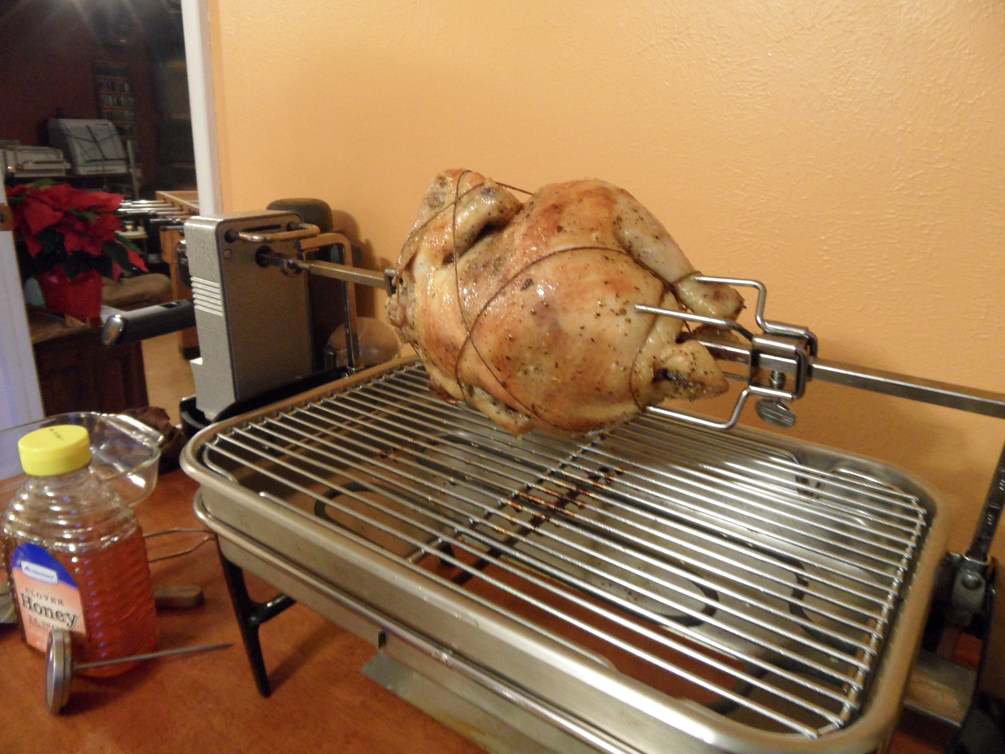 «We got this rotisserie appliance from Dan’s grandparents. With a bit of salt and pepper, and lemon slices placed just under the skin, the taste is unbelievable. This is a nice device for parties during cold winters, to add a bit of warmth to the kitchen, and a focal point for your guests.