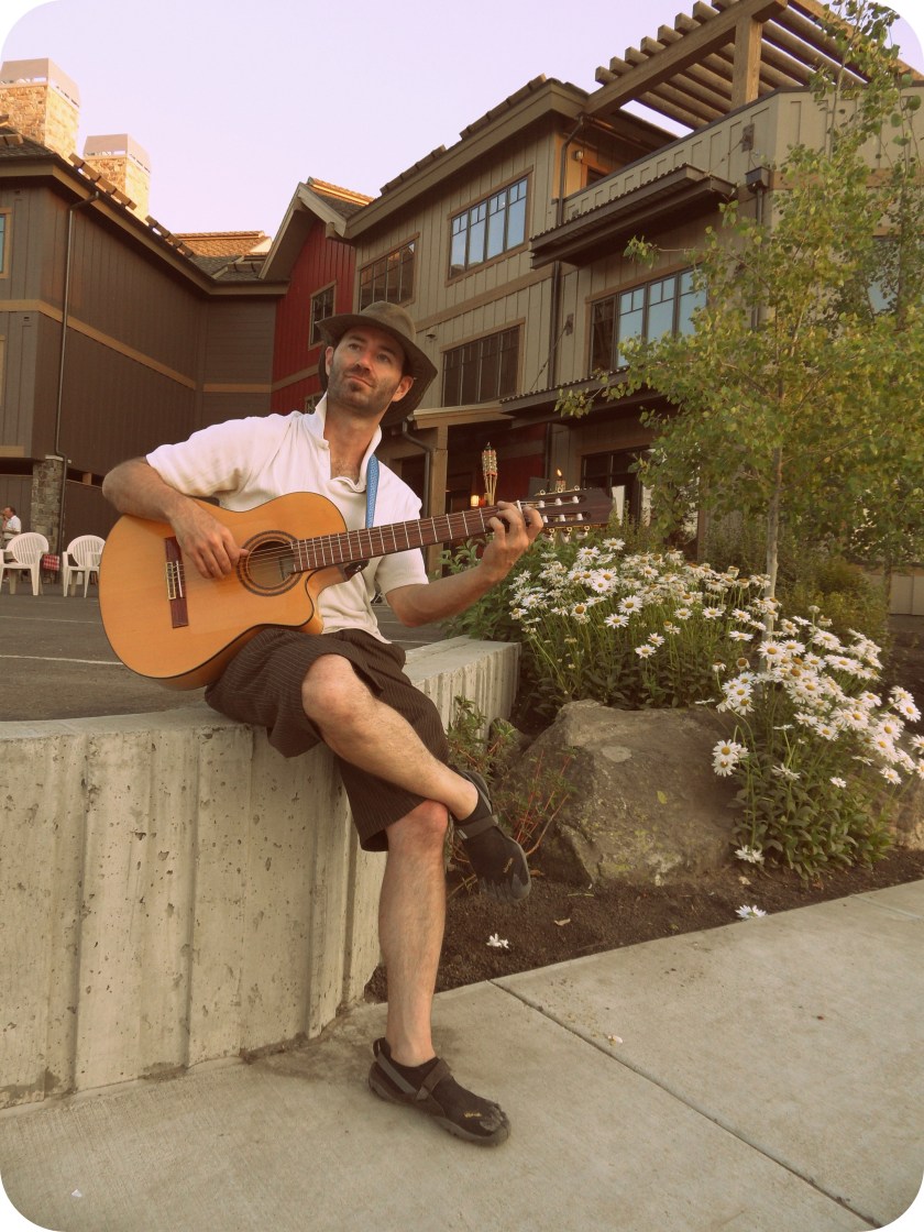 Dan had a gig in McCall at Alpine Village a few weeks ago. The sky, white and hazy with fire smoke, matched our pale outfits, also skin.