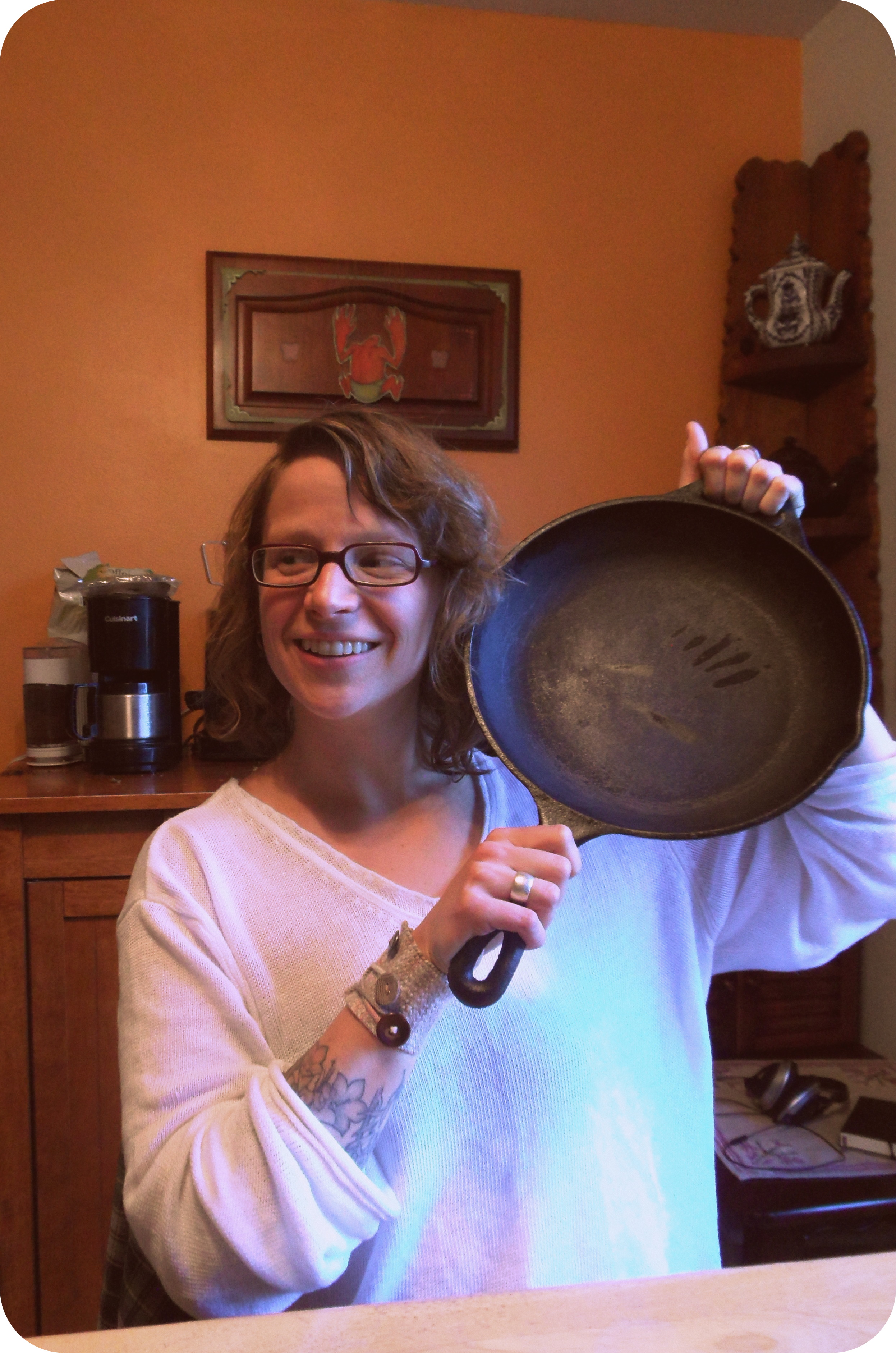 Kelly had just moved into an apartment downtown, and was subsequently broke. So we gave her one of our (or I should say Dan gave her one of his after I awkwardly whispered to him that it would be so nice) seldom-used cast irons for her tiny stove. But then…Look out Kelly! There’s a monster above your head! “Soggy Bread” by Ben Wilson, from his 2010 Monsters in the Cupboard series.