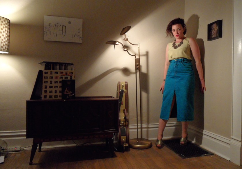 I have this sick green neon sign in my bathroom that inspires serial killer queries from dates. It’s by Boise artist Wil Kirkman. I bought it at Visual Arts Collective a few years ago when in the suck, because it illuminated the darkness. It also gives off great mood lighting for pooping and showering (but not in that order, because ew). vintage Roper acid blue jean skirt, LUX, $18.99 vintage Liz Claiborne puke green tank, LUX, $7.99 Cindy Says green-gold hells, Piece Unique, $I can’t remember but they were half off 1920’s Afghanistani silver and glass necklace, Armor Bijoux, $$$ I wore this outfit to Story Story Late-Night‘s PURGATORY: Stories of Being Stuck in the Middle with You, the adults-only black sheep arm of the live storytelling show I co-created and artistic direct. Something about the high-waisted, acid-colored denim split skirt speaks to all the weird fashion trends I am stuck forever craving, to my ultimate detriment. The sickly, silky green top brings to mind my sign. In bleaker times, I read those three words as a concise summary of life itself. The …
