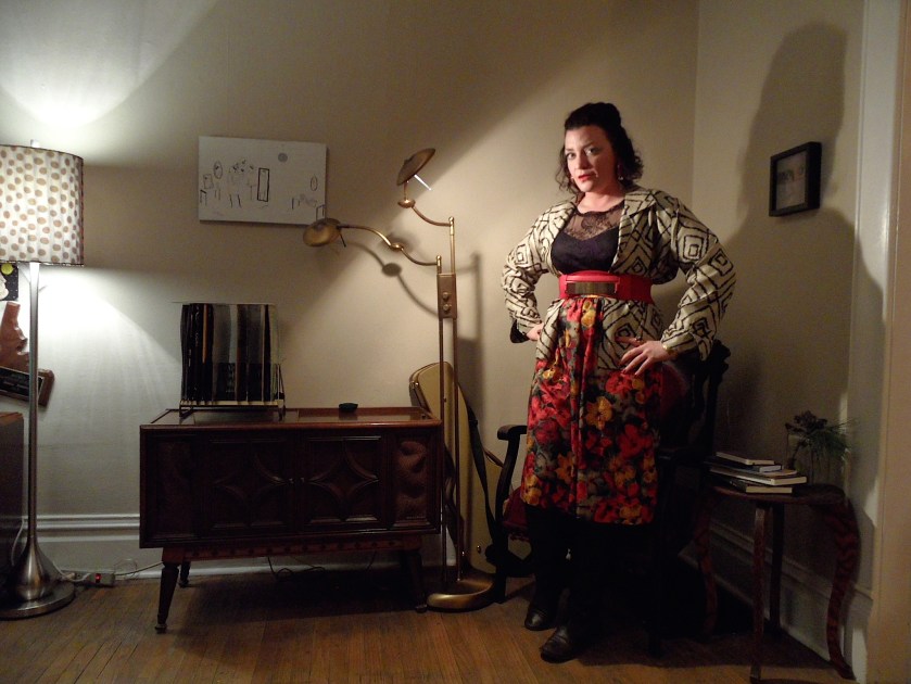 Dedicated to the real Man Repeller. Or “How to lose a guy(‘s boner) in one dress,” if this were a romantic comedy starring Kate Hudson and a flaccid Matthew McConaughey. I wore this tonight to Story Story Night‘s REALiTY BiTES: Stories of Eating It. Opening the show, I mentioned that guys can’t quite put a finger on it. And while they might play around with the idea that this dress resembles something a schizophrenic grandma would sew for her antique prairie doll collection, they know one thing for certain: They do not want to have sex with it. And to that I say, touché. But I shall wear it anyway. vintage Diane Fre’s purple print ruffle dress, $14.99 – Idaho Youth Ranch | Steve Madden black leather mules, $39 – Nordstrom’s Rack | White tassel earrings, birthday present This is my kiss off face. Quoth Amy Poehler, “I don’t care if you like it.” (I also included a cat and a doll collection in this post to up my man repellant street cred.) PS: So …