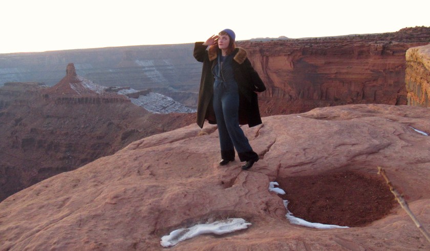 Put your tray tables in an upright position, and prepare for departure from 2020. On your right, a once-in-a-millennium scene of cosmic proportions and galactic significance. Though a rather shoddy photo of it (as I took it myself, handheld, shaking in the subzero temps of the Utah high desert). In a spontaneous gambit to witness the Great Conjunction of Saturn and Jupiter, I rented a magically-available yurt in the dark sky preserve of Dead Horse State Park near Moab, Utah. We could all use a little escape hatch from the universe. A shift into a new alignment. A different perspective entirely. Tho I imagine on the earth-bound Galactic Federation spaceship, the on-flight entertainment is exclusively limited to 1985’s “Cocoon.” Because we all know that when the aliens land—instead of delving into the timeless secrets of the universe—Boomers will just try to mine them for their next-level Botox and anti-aging secrets. Victoria’s Secret blue satin jumpsuit, $15 – Antique World Mall | Smithline Exclusive brown knit coat with fur trim, $55 – Antique World Mall | …