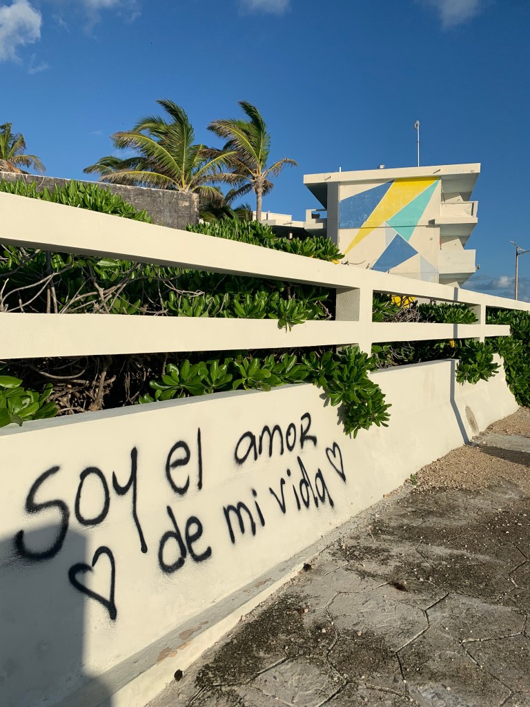 On the next turn, in a splash of spray paint and Spanish, the concrete answer: “Soy el amor de mi vida.”